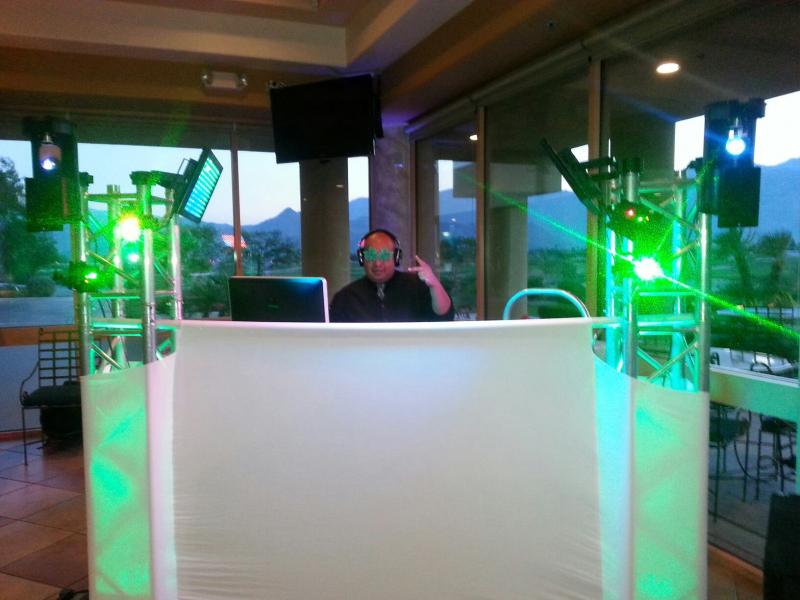 There is a riser request needed for the height so everyone can see the 4 Towers, 2 intelligent lighting, Dj, and 4 Shows performed by the Djs. with extra glowsticks and balloons.